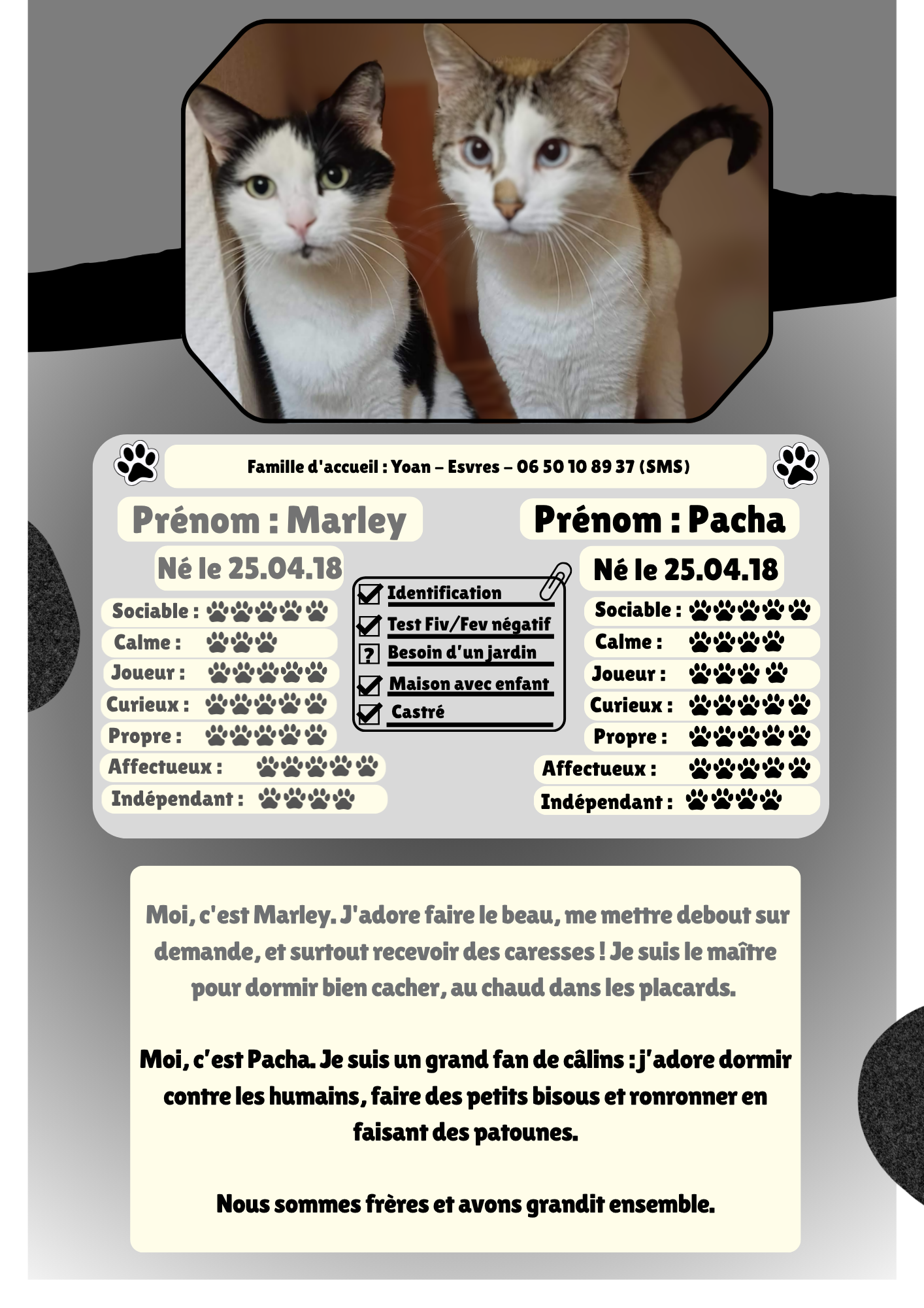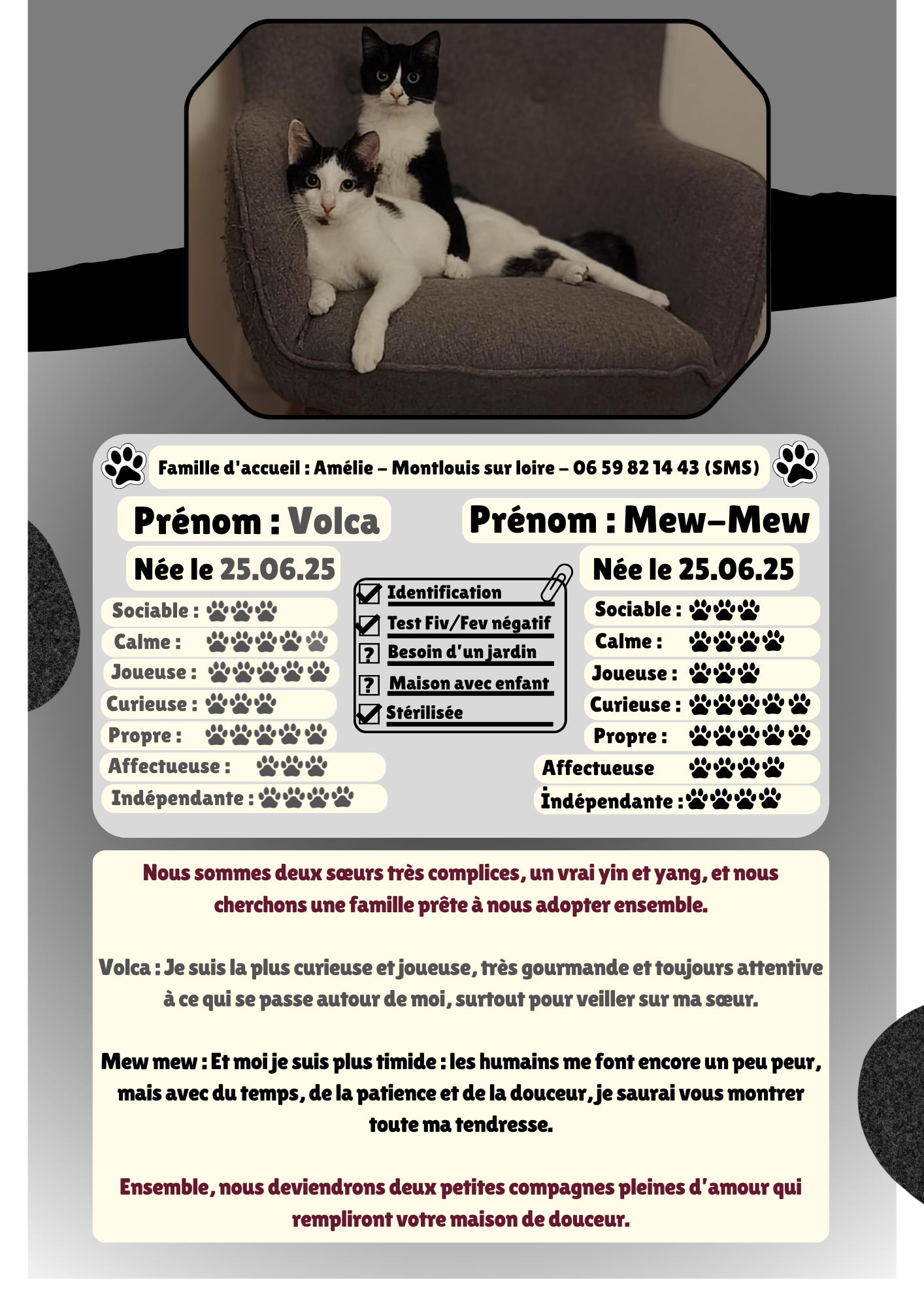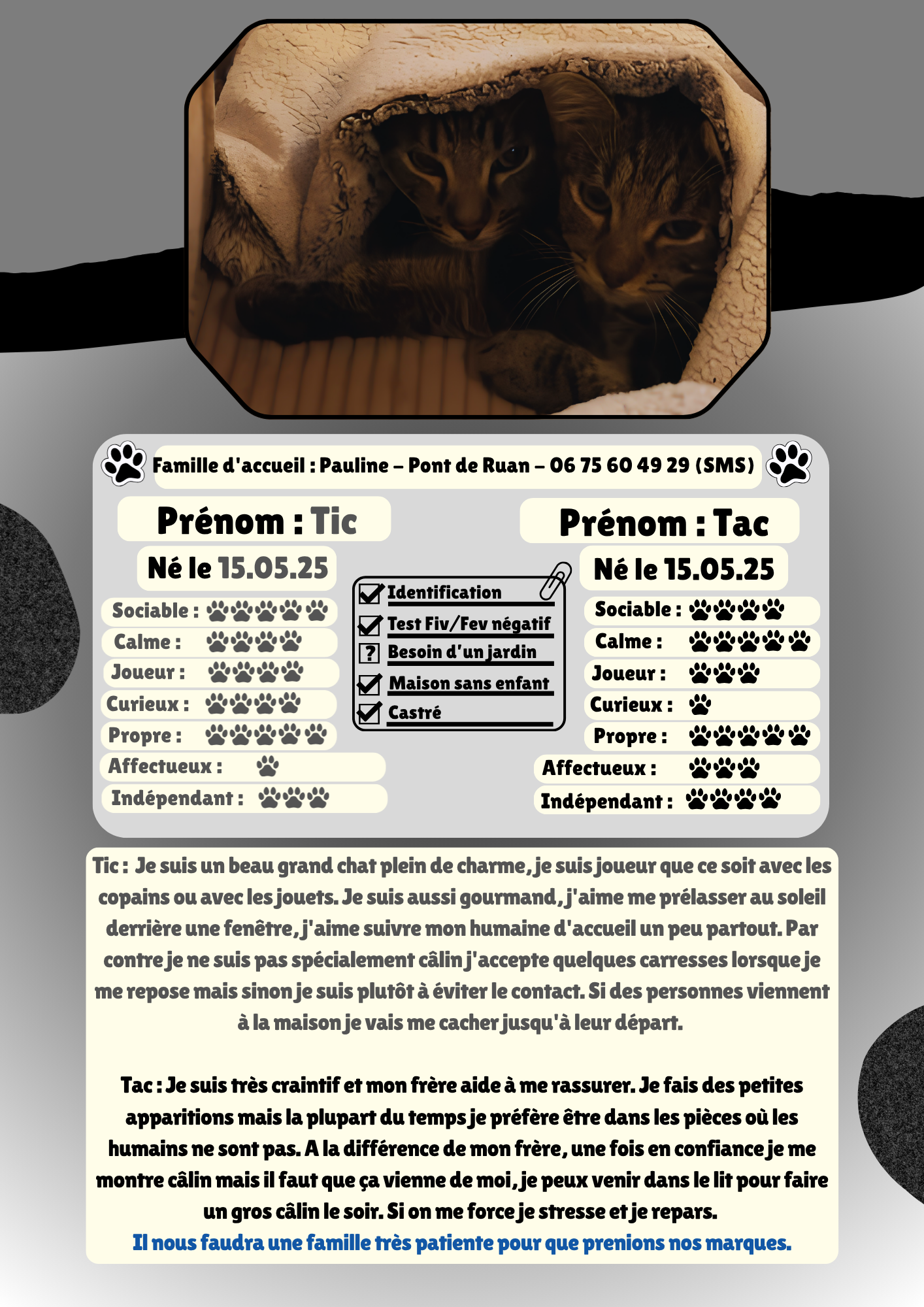 Ce diaporama a pour objectif de présenter, mois après mois, les chats et chatons qui ont trouvé une nouvelle famille. Il met en lumière chaque adoption réussie afin de partager ces belles histoires et de valoriser le travail accompli par l’association pour offrir une seconde chance à nos sans voix.